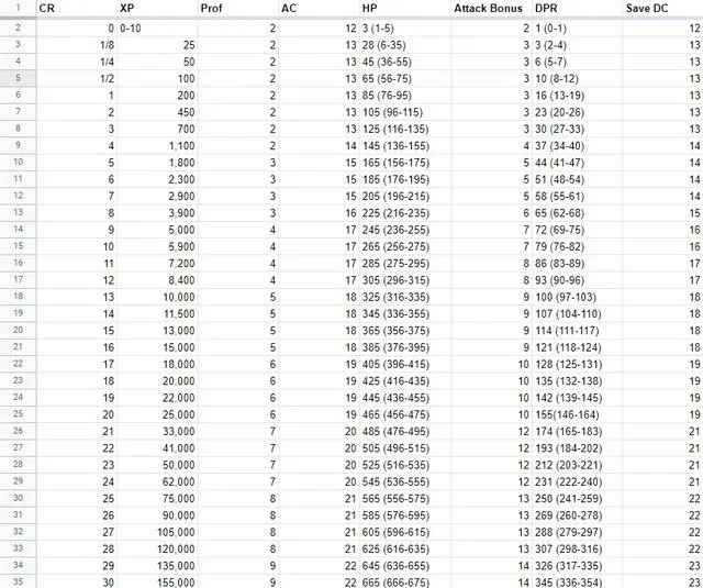 For this, we use an expanded CR calculation table based on work by u/Azuria1 on Reddit, who did an amazing job doing the math for high-end design.